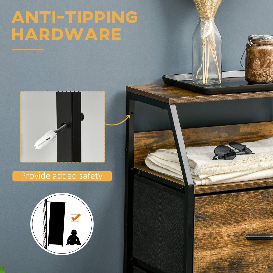 A stylish storage cupboard, for handy home tidiness, is always a winner. Look to this HOMCOM industrial-style sideboard for a stand-out piece this season and beyond. A steel frame for a strong, supportive structure, with durable MDF shelves make this piece suitable for everyday use. It comes with three fabric drawers - generous amount of room; the drawers are easily removed. Complete with handy adjustable feet.