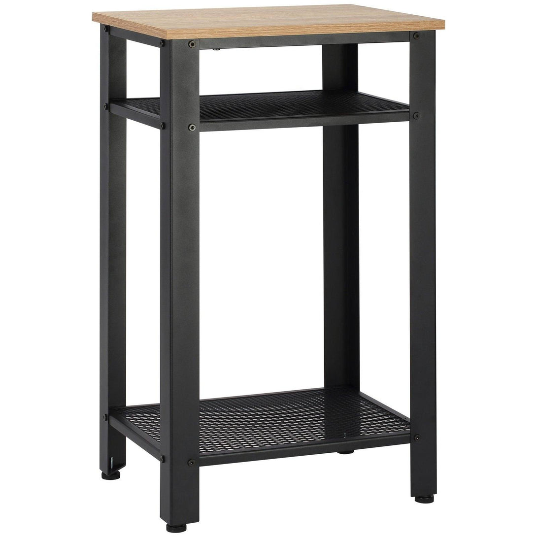Sharp, statement living style begins and ends with this metal frame table from HOMCOM. A tall, boxy shape crafted into an Industrial-style design catches the eye, whilst the neutral tone makes it easy to blend in - great for mixing in easily with your other furniture. There are three levels for plenty of holding and display room, so you can have your favourite bits next to you as you relax by the sofa: perfect for those lazy Sundays. Finished with adjustable feet.