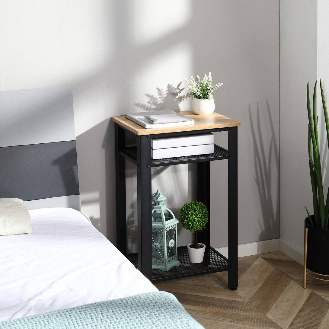Industrial-Style Boxy Side Table 3 Layer 2 Shelves Storage Display w/ Metal Frame Stylish On-Trend Bedside End Table Nightstand