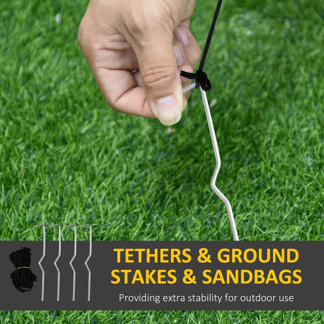 • Internal fan, two tether ropes, four ground stakes and sandbag included