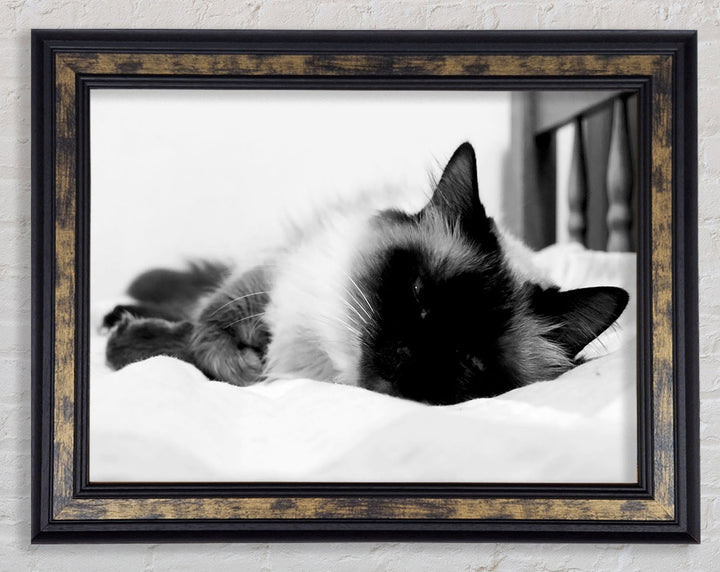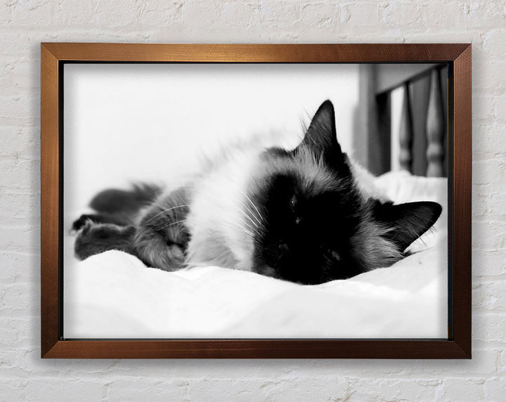 Introducing the "It's A Cat's Life B n W Framed Print," a charming piece of framed art that captures the essence of feline relaxation. This exquisite print is available in six sizes, ranging from small to oversized, ensuring a perfect fit for any space in your home. Handcrafted with care in the United Kingdom, each piece showcases a high-quality black and white image of a contented cat, adding a touch of elegance to any room.