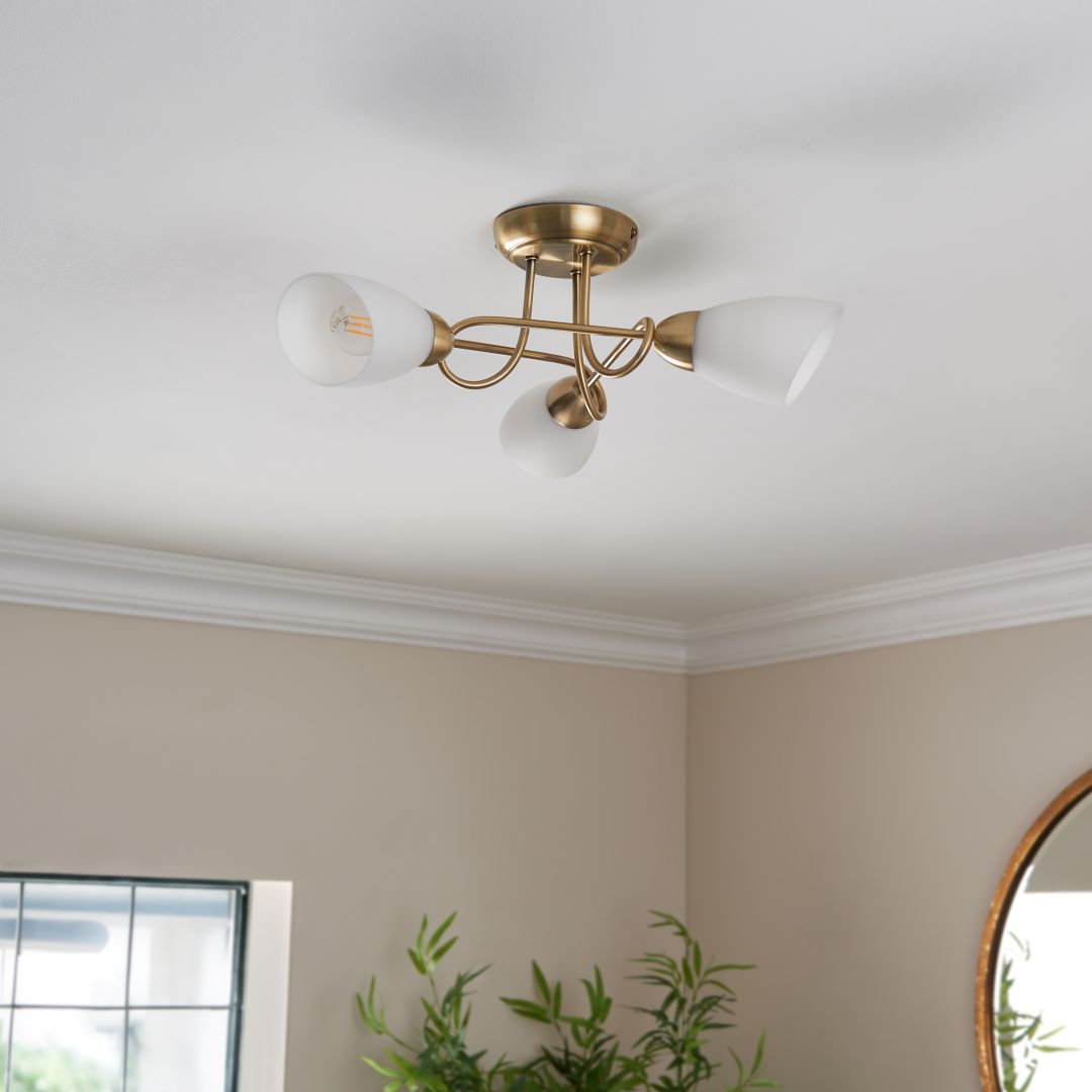 Jaco 3 Light Semi Flush Antique Brass Ceiling Light