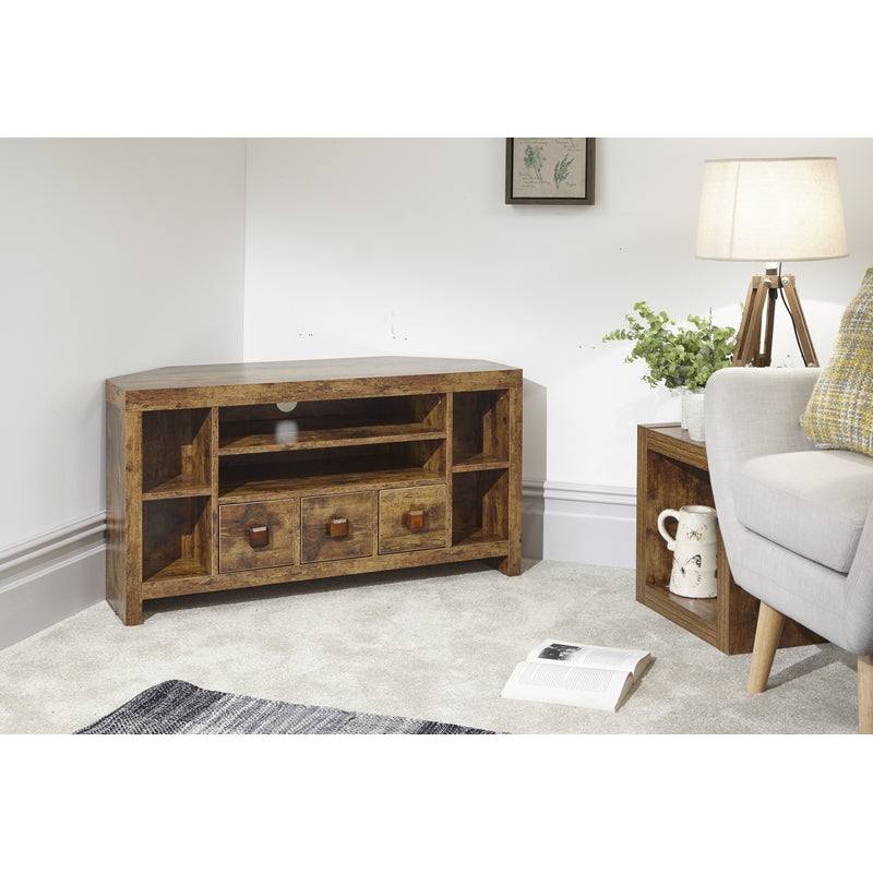 Jakarta Corner TV unit Natural 6 Shelves 3 Drawers