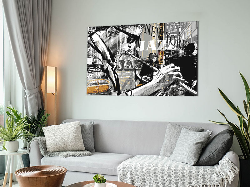 Jazz In NYC Printed on brushed aluminium dibond. A modern way to display art and easy to maintain.