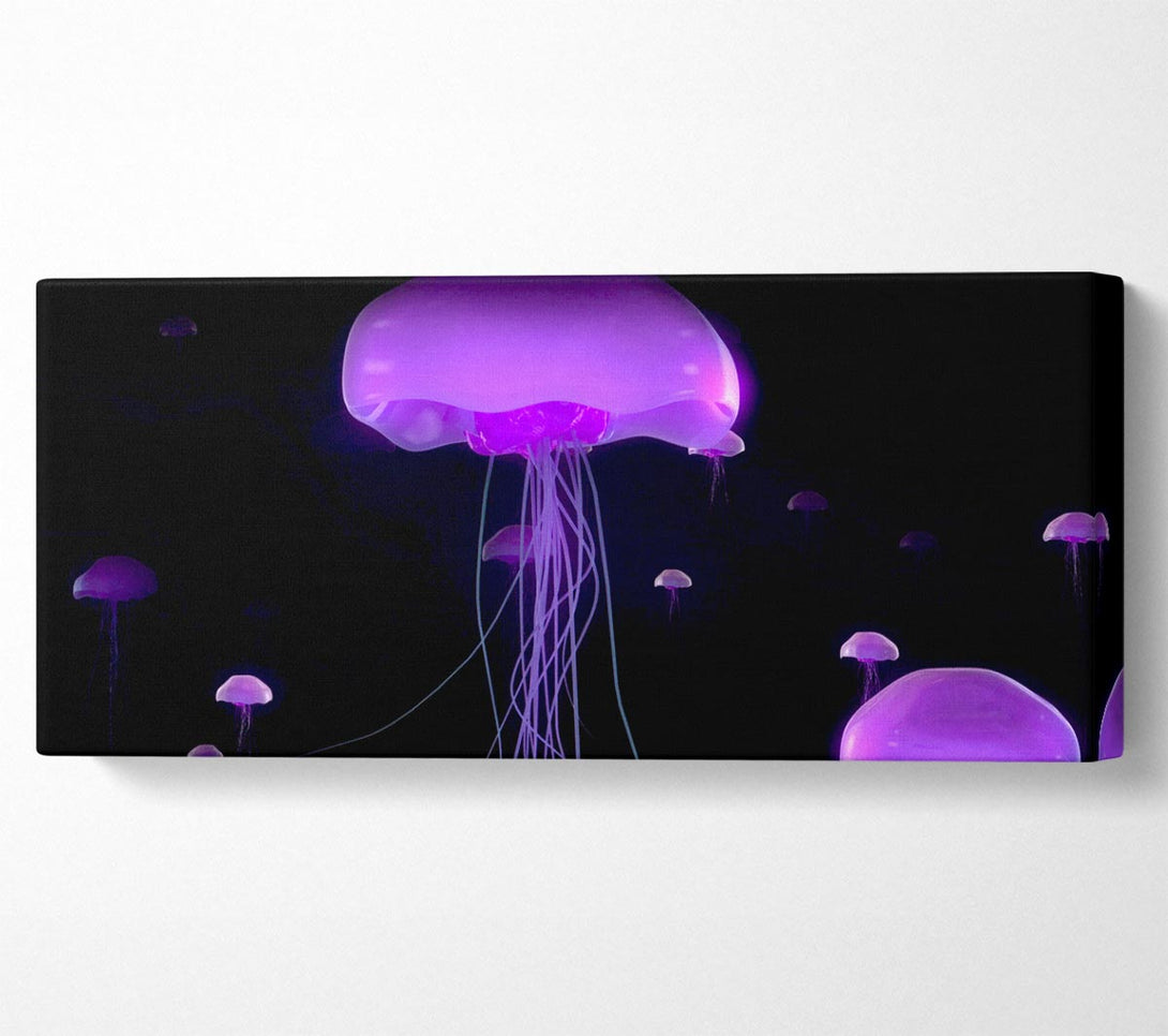 Jellyfish Lights Up The Ocean canvas, printed on coated polyester canvas. Mounted on to a 44mm box frame, ready to hang.