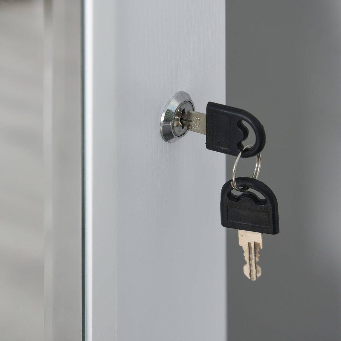 • Can be locked for security when you're not around, comes with two keys - Magnetic closing on the mirror door for smooth opening and closing