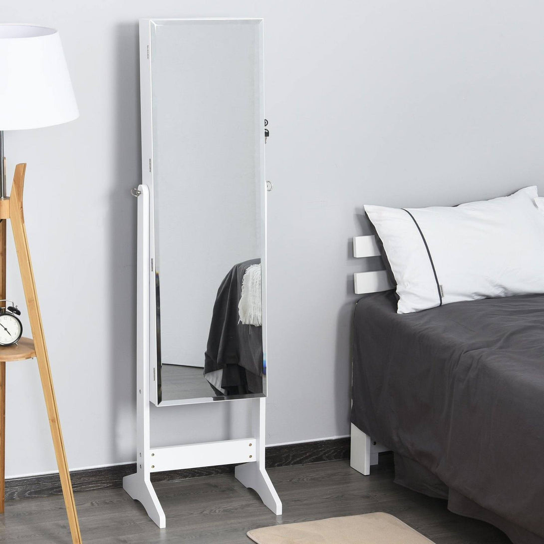Keep all your jewellery safe, organised and easily accessible with this mirror jewelry cabinet from HOMCOM. On the outside, a full-length mirror is fitted for you to get easy, and can be adjusted to suit you. Inside features 114 earring slots, 18 necklace and bracelet hooks, 98 ring slots, fives shelves and a small bag so you can everything you need in a place. The inside can be locked for security when you're not around. The jewellery armoire will help you get ready all in a spot.