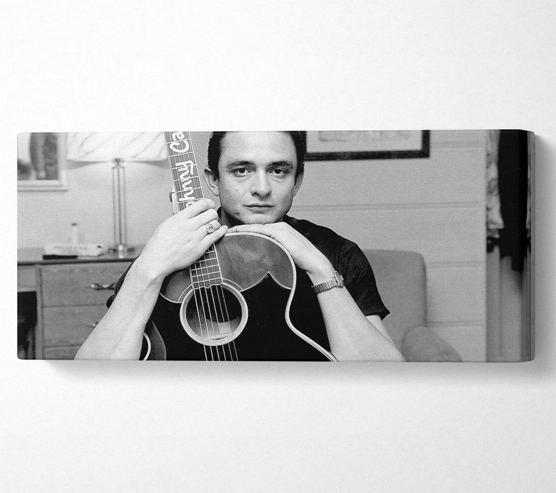 Johnny Cash Guitar canvas, printed on coated polyester canvas. Mounted on to a 44mm box frame, ready to hang.