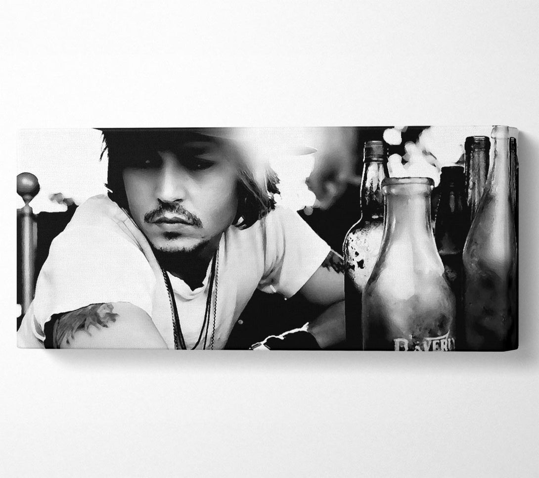 Johnny Depp Hat B n W canvas, printed on coated polyester canvas. Mounted on to a 44mm box frame, ready to hang.