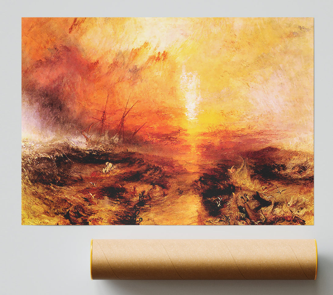 Our Joseph Mallord Turner Slaves Being Thrown Overboard Typhoon Approaching Poster is printed 260 GSM premium lustre paper that offers vibrant colours and exceptional detail.