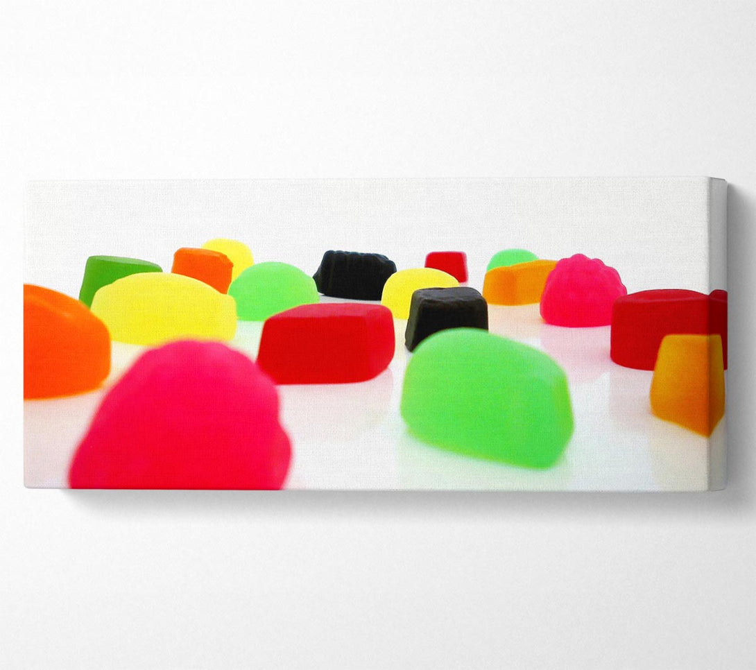 Juicy Winegums canvas, printed on coated polyester canvas. Mounted on to a 44mm box frame, ready to hang.