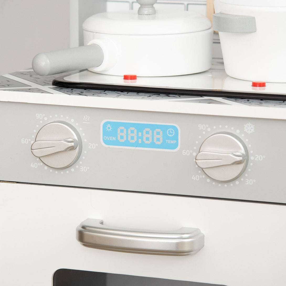 This wooden kid's kitchen set from HOMCOM is perfect for kids who like to pretend! A complete set of accessories is included detachable sink, simulation faucet, microwave, range hood, 5 pcs wooden kitchen accessories and more. Toddlers will have a blast pretending to cook on the pretend stove burner that features sounds and light. Sharing the play kid's accessories and appliances gets kids interacting with each other, building social skills as they cook and play the day away!