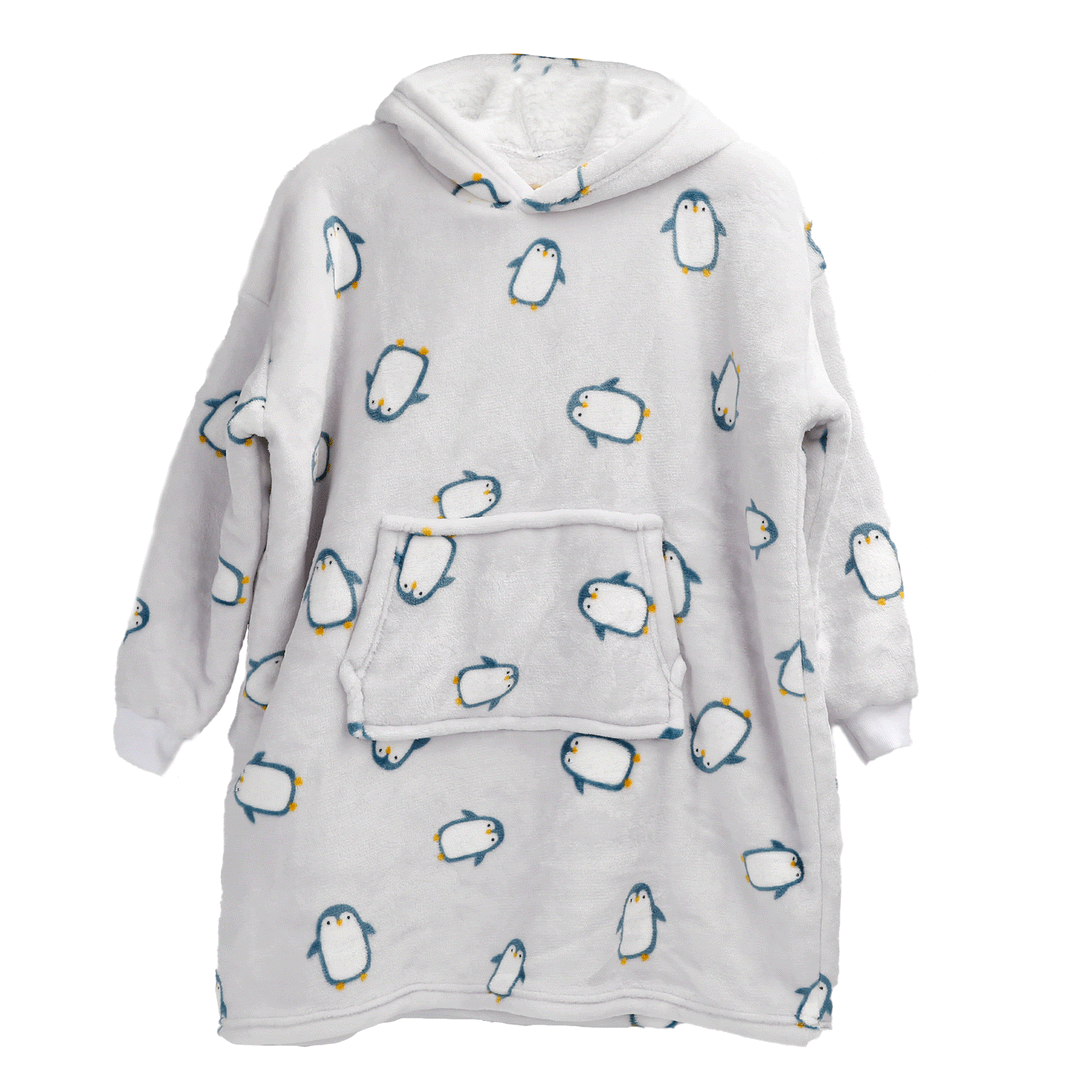 Kids Oversized Hooded Penguin Blanket Hoodie Ultra Soft Sherpa Flannel for Ages 8-15 Warm and Cozy by Daisy Dreamer