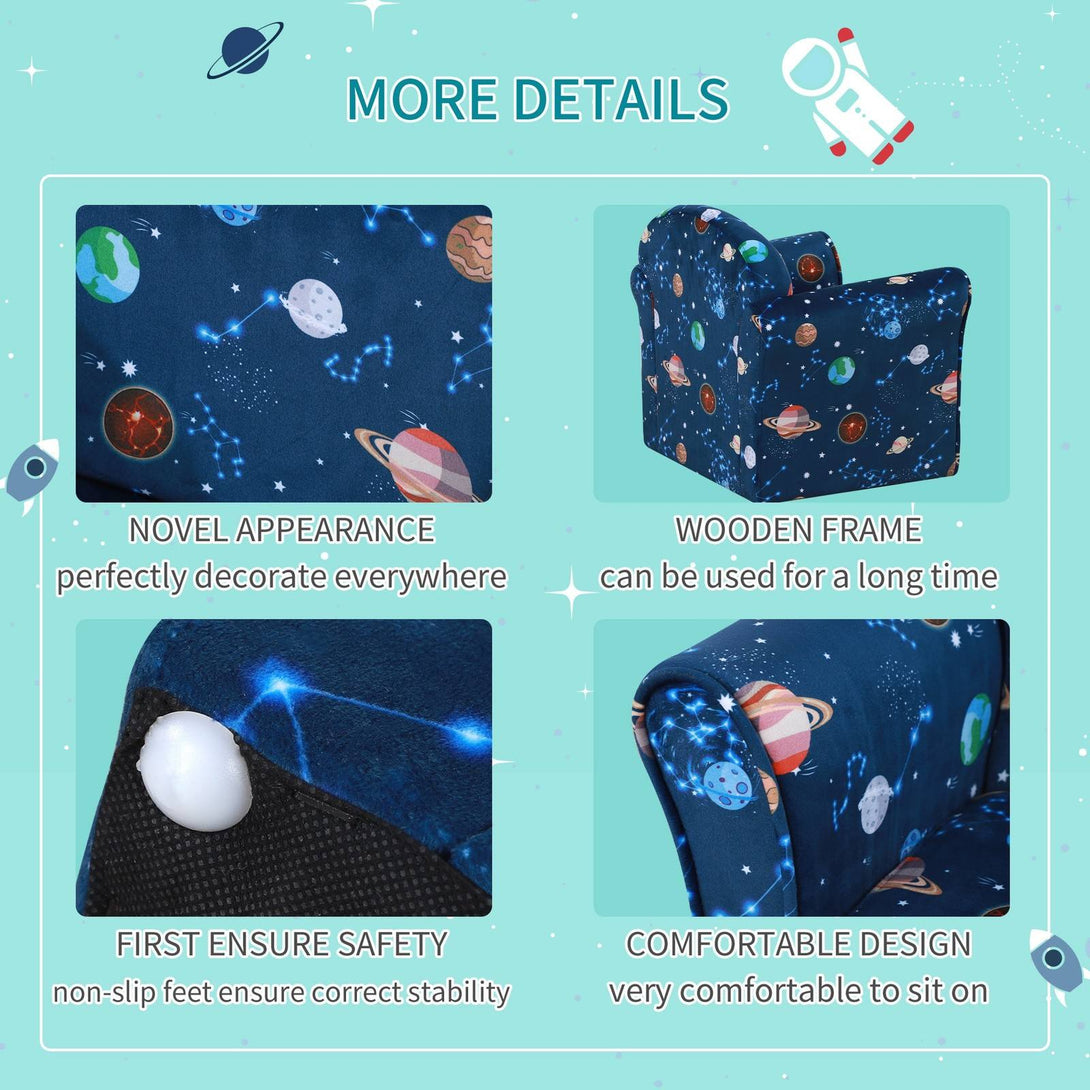 Kids Planet Themed Armchair With Non Slip Feet Wooden Frame Blue