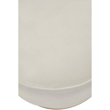 This barrel style chair is sleek and graceful in cream velvet upholstery that enhances its elegant curves and craftsmanship. The plush seat is supported with a gold finish round metal base that contributes to the glam appearance.