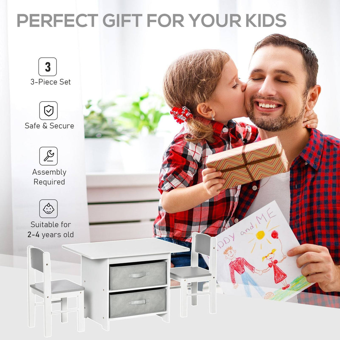 Children can eat, play and relax with this three-piece set from HOMCOM. The matching set of chairs is perfect for playdates, their friends and siblings. It's their own personal space, where they can keep their toys, books and snacks in the drawers, ensuring your home stays tidy. Made from MDF material, it's durable and easy to clean, maintaining good hygiene. The soft round edges helps prevent children from hurting themselves. Their own area for endless activities, thanks to this mini set.