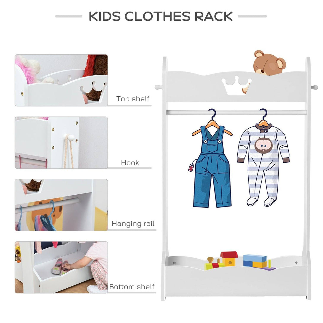 Make life more convenient with our HOMCOM kids clothes rack. Give clothes a home, encourage children to develop a good habit of tidying. The four storage types help kids to organise their clothes, toys, shoes and bags. The clothes racks height is suitable for children to use, and the low centre of gravity design makes it stable, avoiding toppling. Choose HOMCOM clothes rack, give children a chance to manage their own clothes!