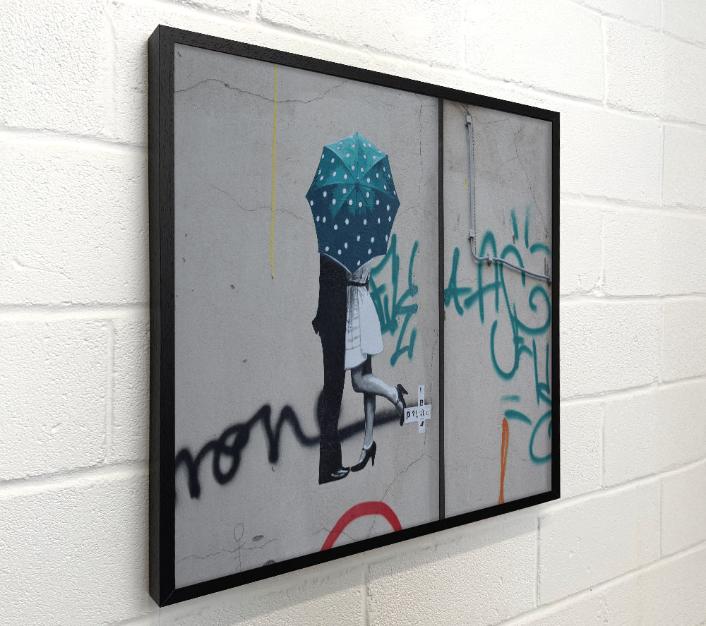 Kissing under the umbrella graffiti