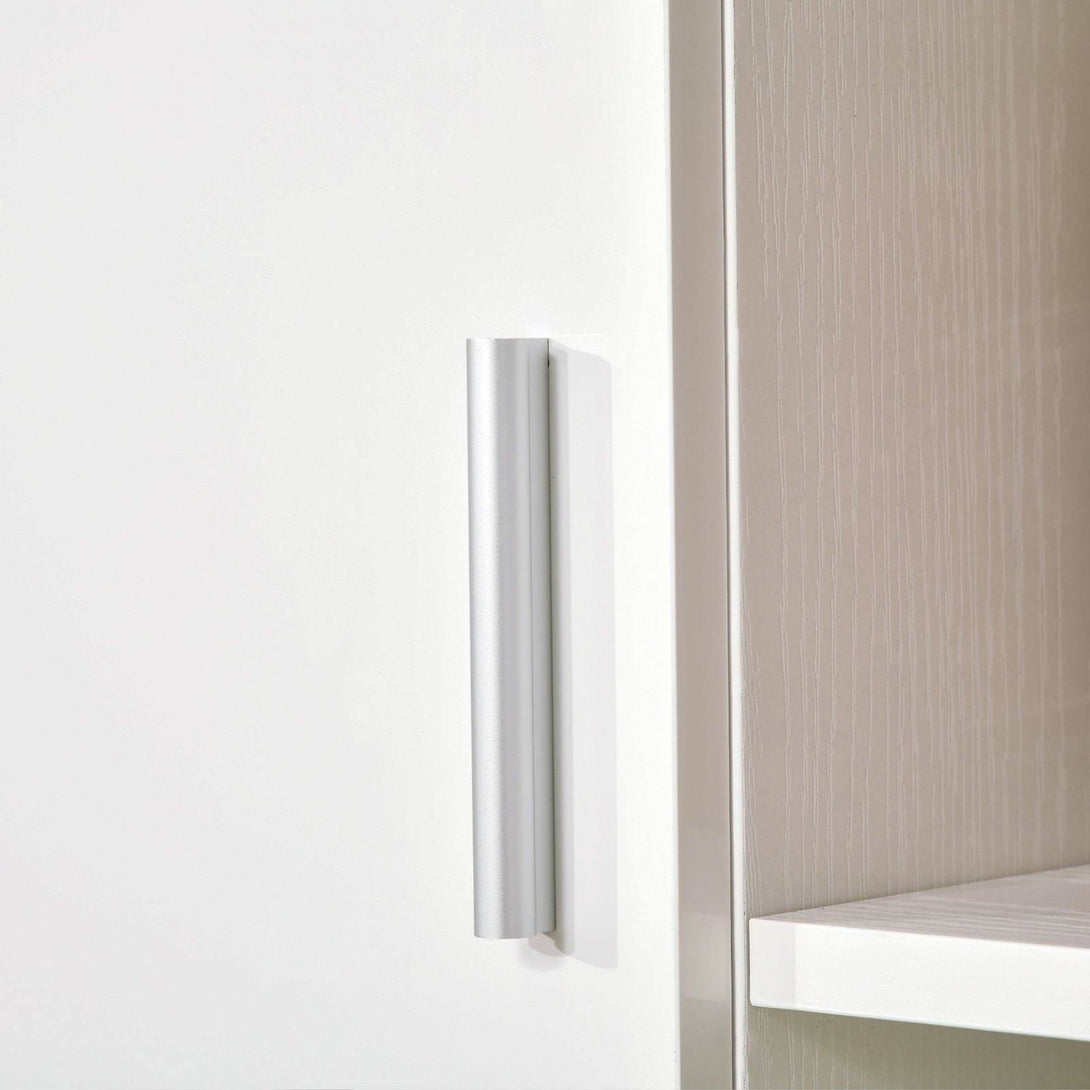 - Colour: High Gloss White Front Panel, White Wood Grain Side Panel