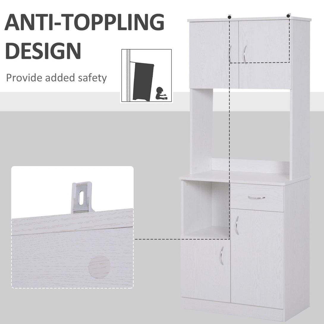 There's no such thing as enough kitchen storage. Ready to make your decision to maximize their storage with our kitchen storage cabinet? Made of sturdy engineered wood to ensure reinforced strength and stability, it is crafted into a tall 178 cm design, showcasing a top and 2 bottom cabinet with adjustable shelves, alongside a slide-out drawer which is ideal for storing cutlery. Let modern-looking beauty take centre stage in your home with this kitchen dresser from HOMCOM.