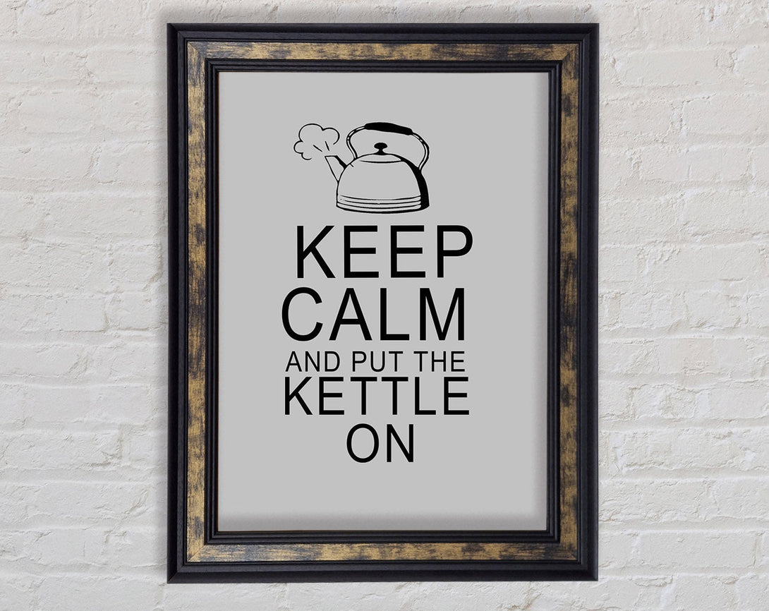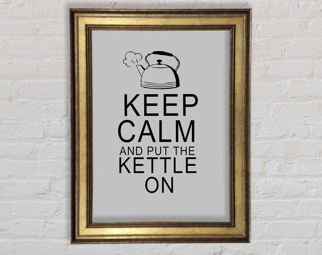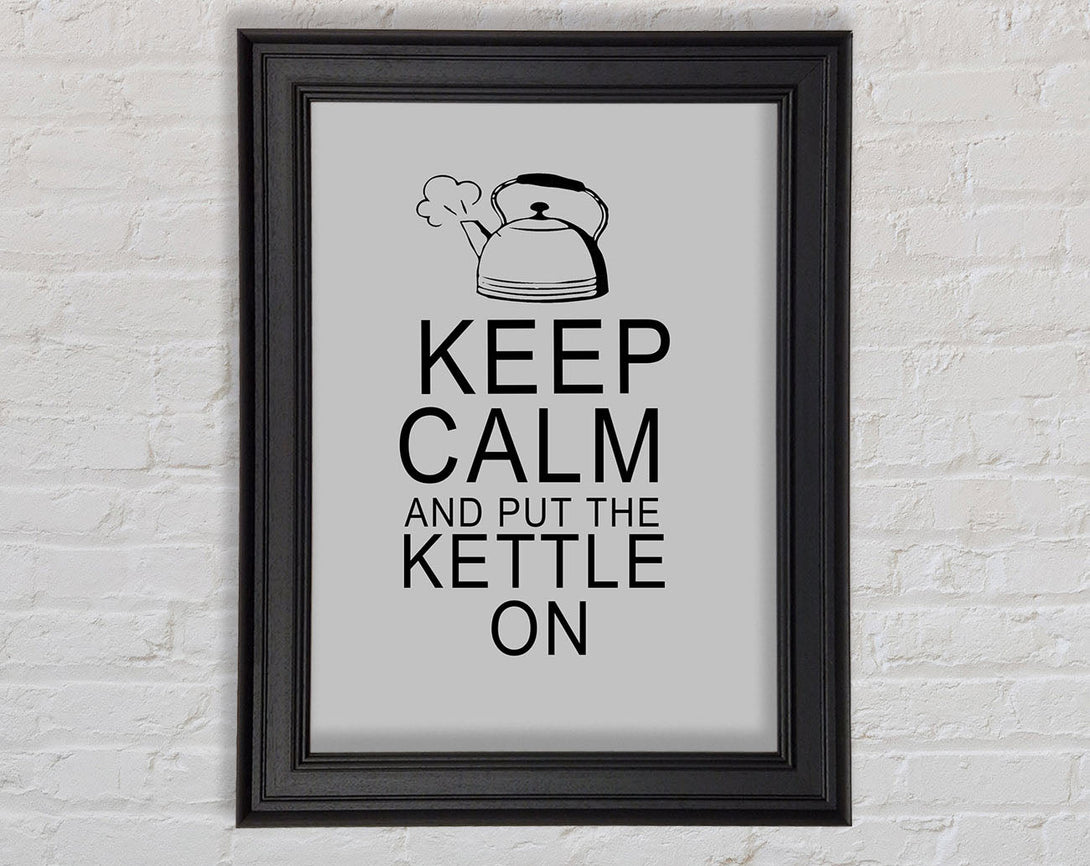 Kitchen Quote Keep Calm And Put The Kettle On Grey Framed Print