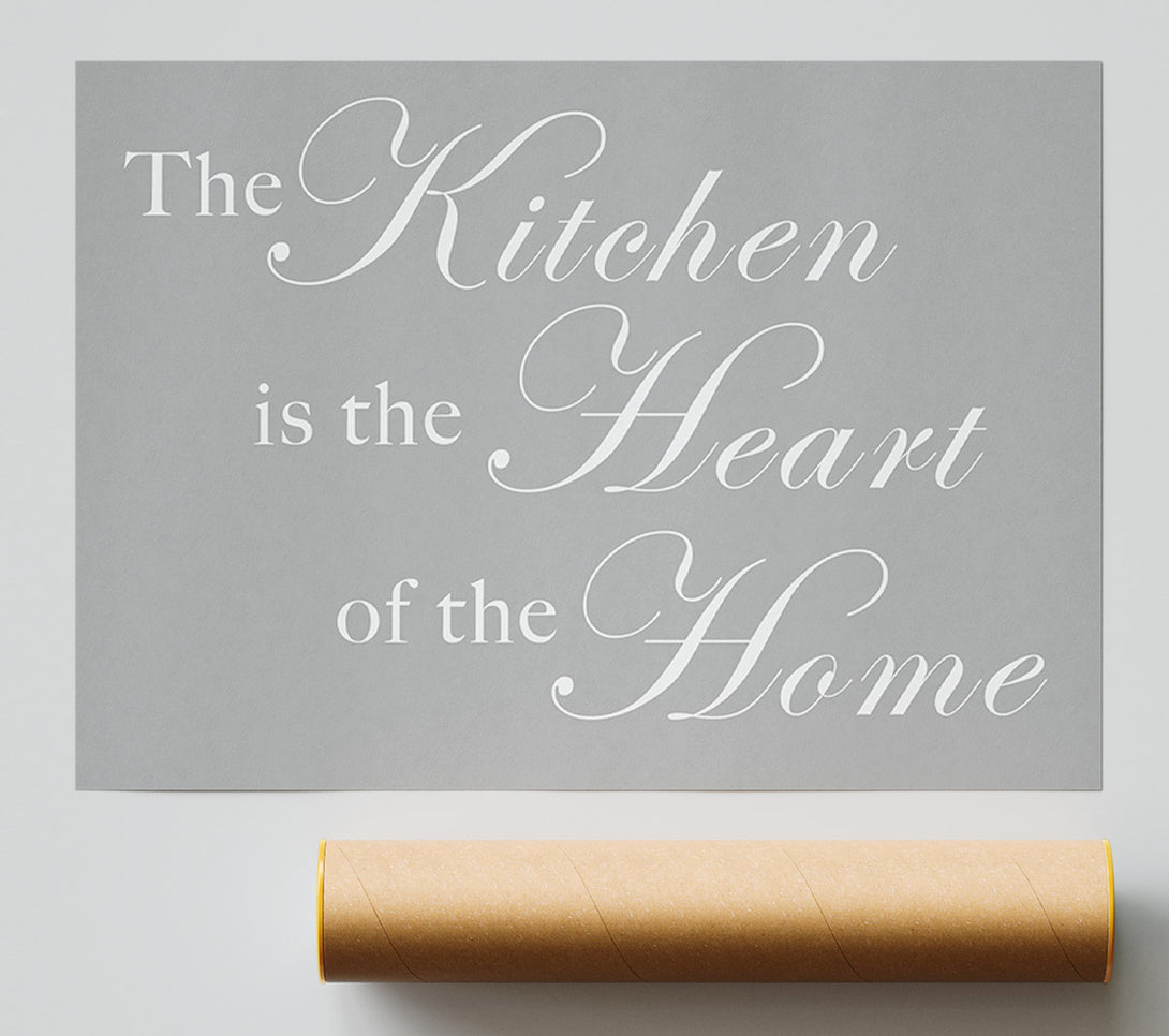 Our Kitchen Quote The Kitchen Is The Heart Of The Home Grey White Poster is printed 260 GSM premium lustre paper that offers vibrant colours and exceptional detail.