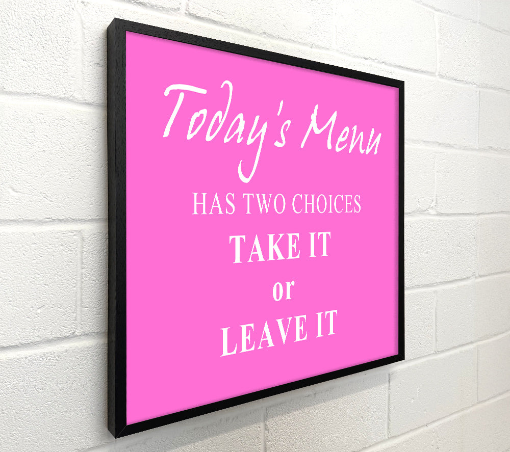 Kitchen Quote Todays Menu Has Two Choices Vivid Pink