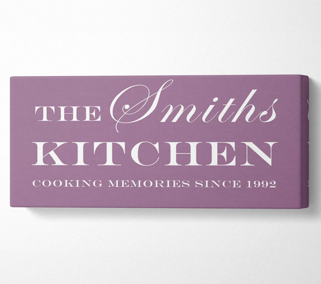 Picture of Kitchen Quote Your Family Name And Date Kitchen Dusty Pink Panoramic Canvas Wall Art
