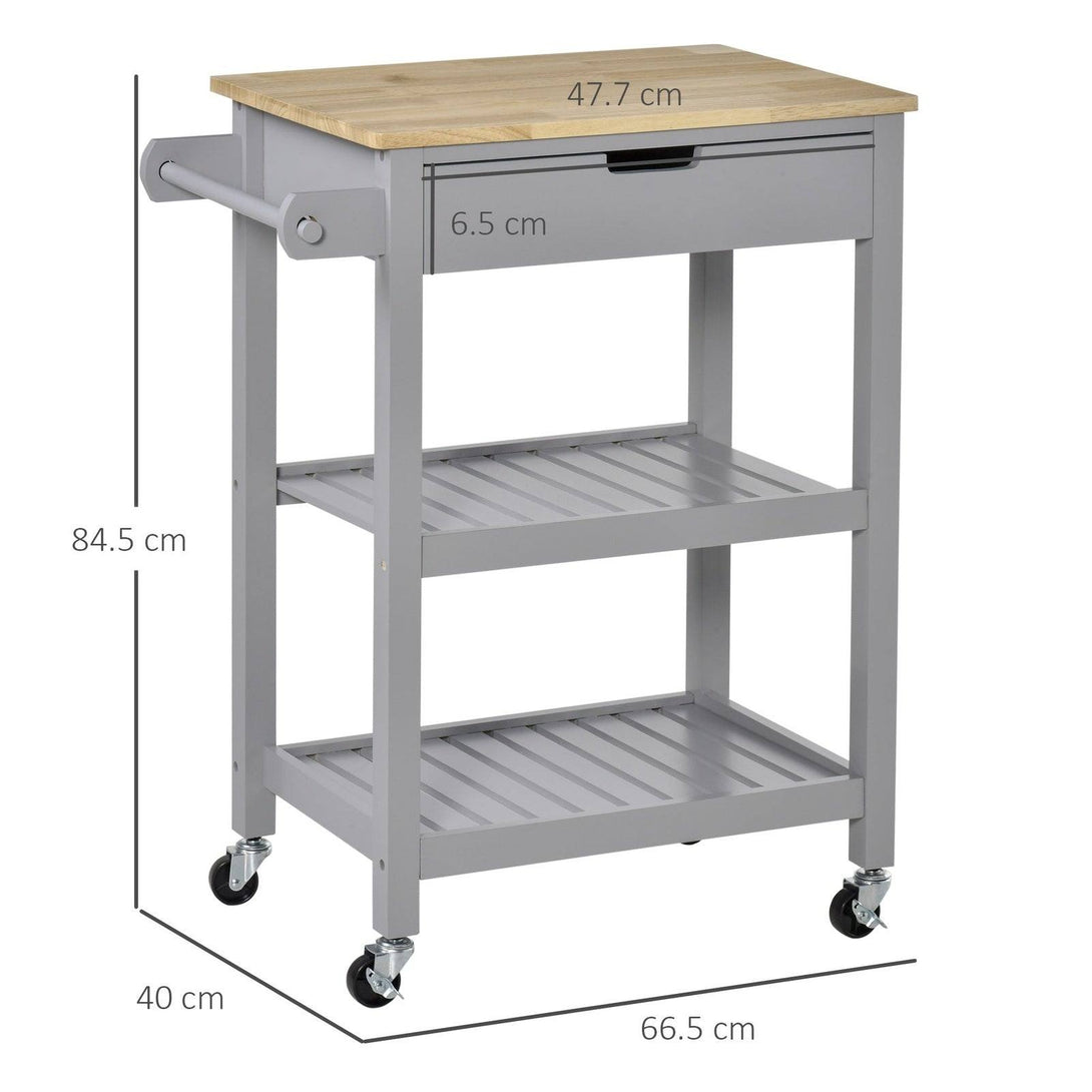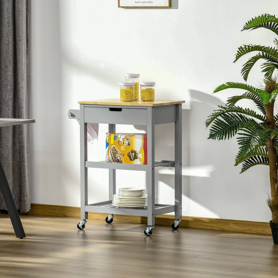 Kitchen Trolley Utility Cart on Wheels with Rubberwood Worktop