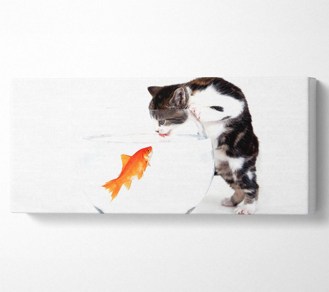Picture of Kitten VS Fish Panoramic Canvas Wall Art