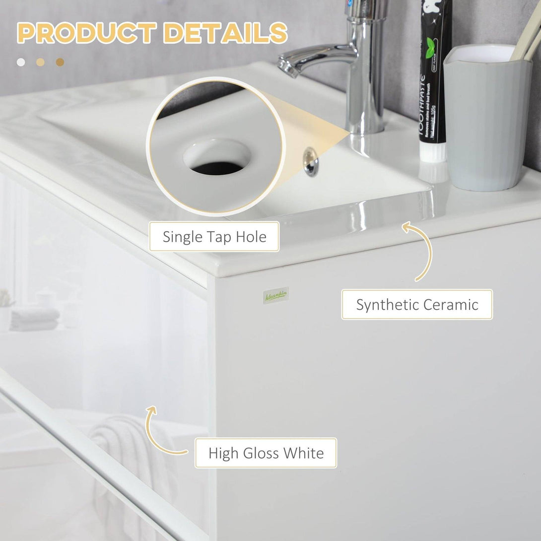 kleankin 600mm Bathroom Vanity Unit with Basin and Single Tap Hole