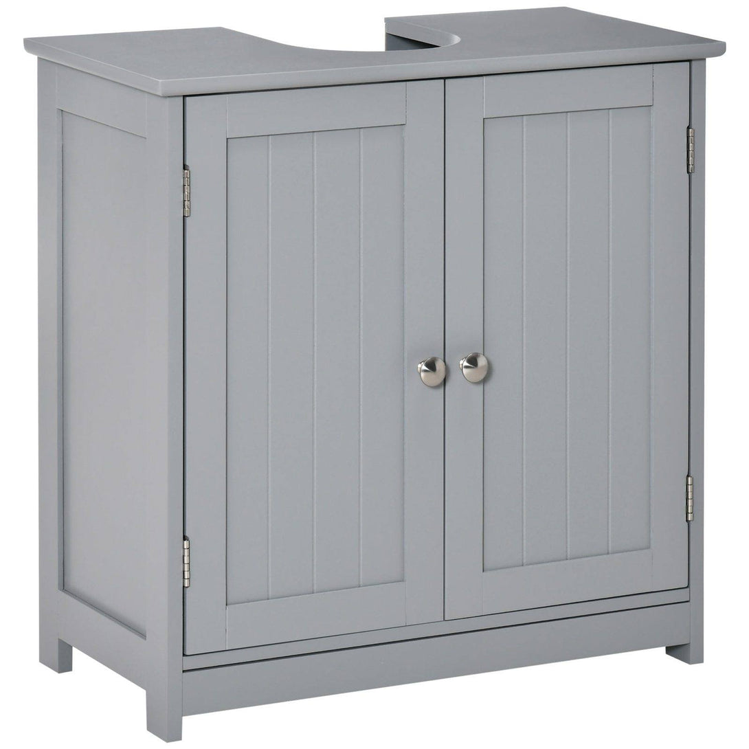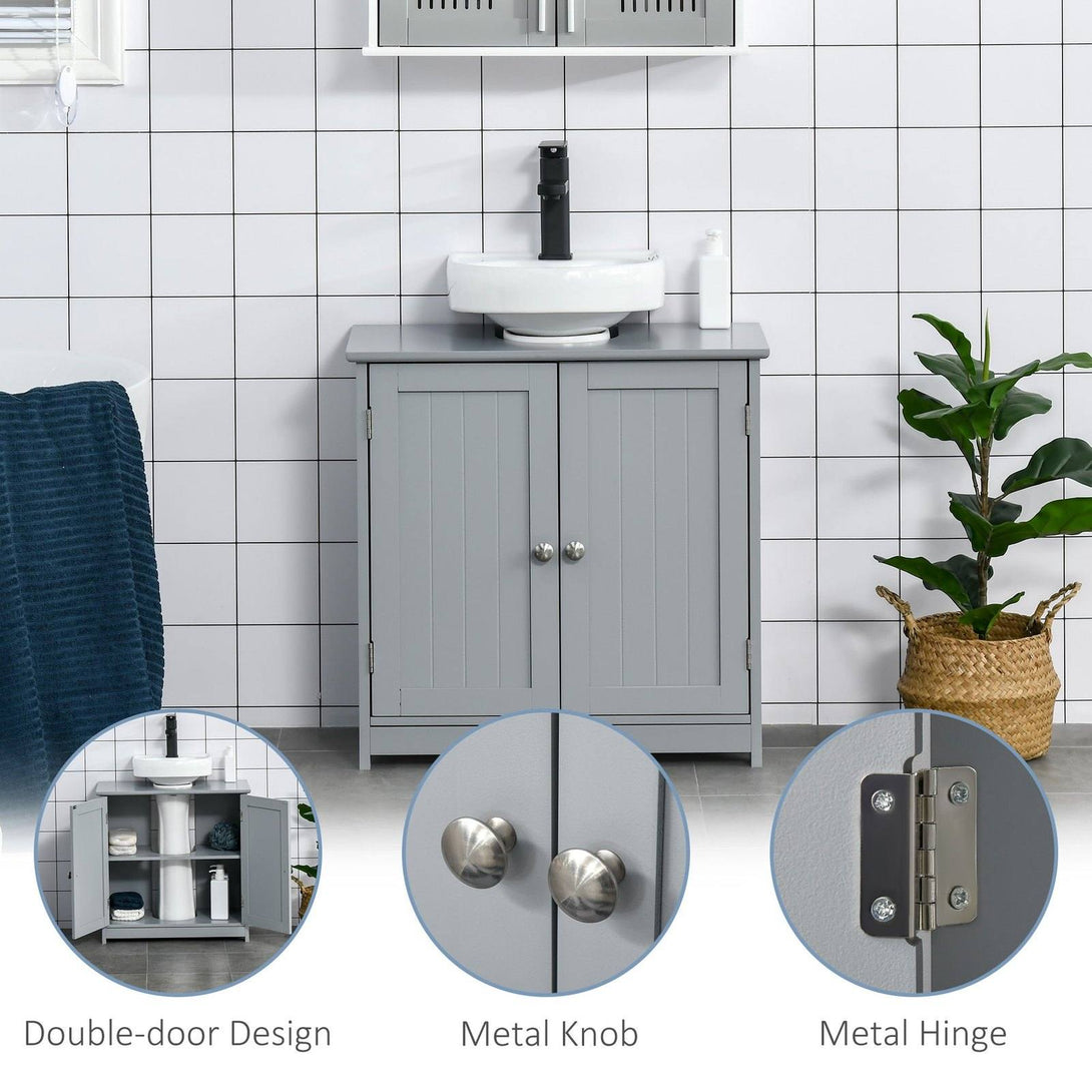 kleankin 60x60cm Under-Sink Storage Cabinet w/ Adjustable Shelf Handles Drain Hole Bathroom Cabinet Space Saver Organizer Grey