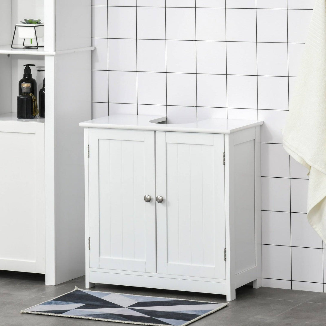 Opt for a traditional aesthetic when choosing under-sink storage with this cabinet from kleankin. Its clean colourway pairs effortlessly with the carved indents and sleek handles. Made from MDF to be solid for daily use, with a smooth paint coating all over for light protection. Inside features an adjustable shelf for organizing and separating toiletries when needed. The 'U' shaped cut out slots into the sink pipe with ease to bring space into your home which you never thought possible before.