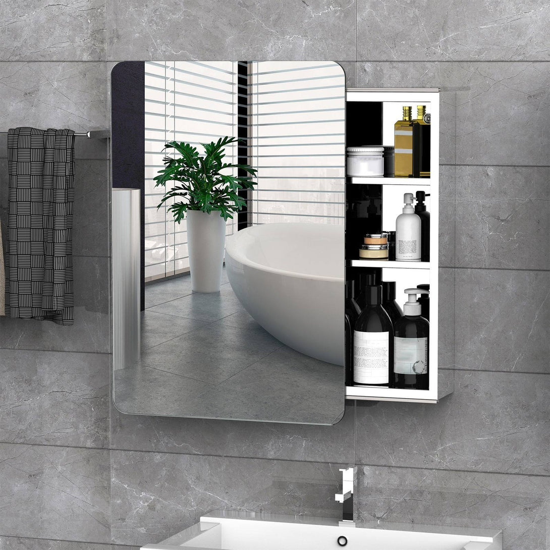 Let the smooth curvature and hidden inner storage of this bathroom mirror cabinet, from kleankin, bring effortless elegance and storage into your bathroom. Using stainless steel for the frame, the structure is naturally lightweight, tough and resistant to light rusting and moisture damage. The large mirrored door slides across to grant access inside, opening gently and smoothly for ease of use. A wall-mountable design is a fantastic space-saver for the bathroom and beyond.