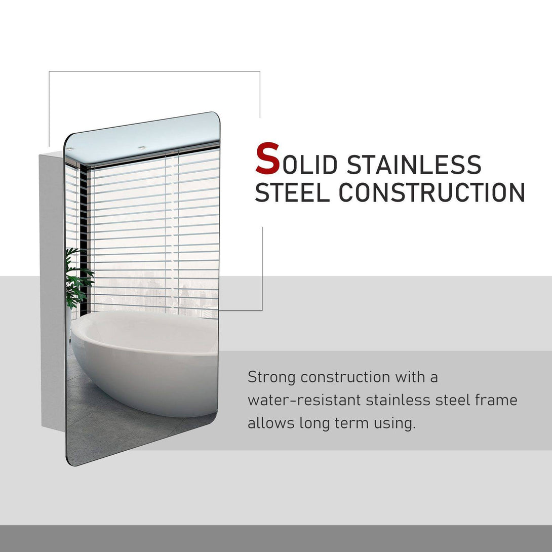 kleankin 66x46cm Curved Bathroom Storage Cabinet w/ Sliding Mirror Door 3 Shelves Stainless Steel Frame On-Wall Unit Home Furniture