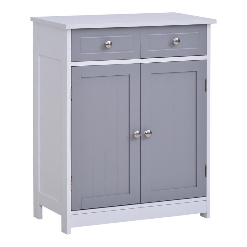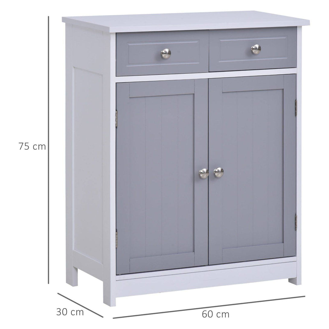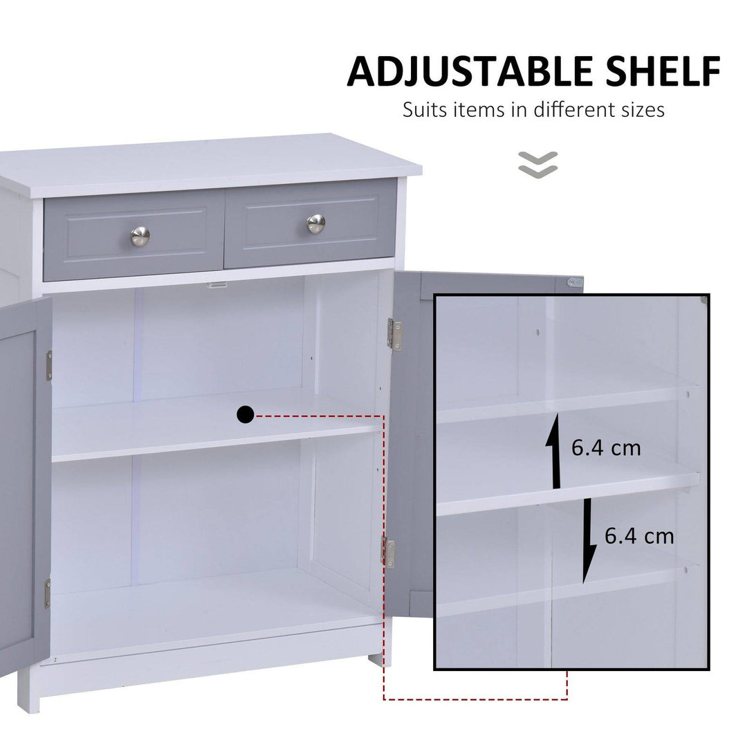 Kleankin 75X60cm Freestanding Bathroom Storage Cabinet Unit W/ 2 Drawers Cupboard Adjustable Shelf Metal Handles Traditional Style Grey White