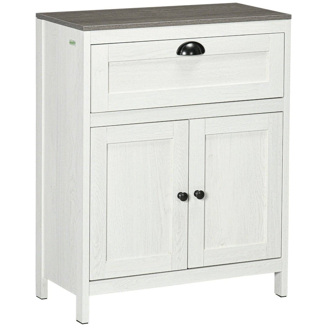 Expand storage with this kleankin bathroom storage cabinet. Made from particle board for sturdiness, it features a pull-out drawer and bottom cabinet for plenty of storage. Cabinet comes with a three-level adjustable shelf to fit in differently-sized items. A white design, with wood-effect top for classic style, looks great anywhere. Completed with anti-tipping straps on the back for safety.