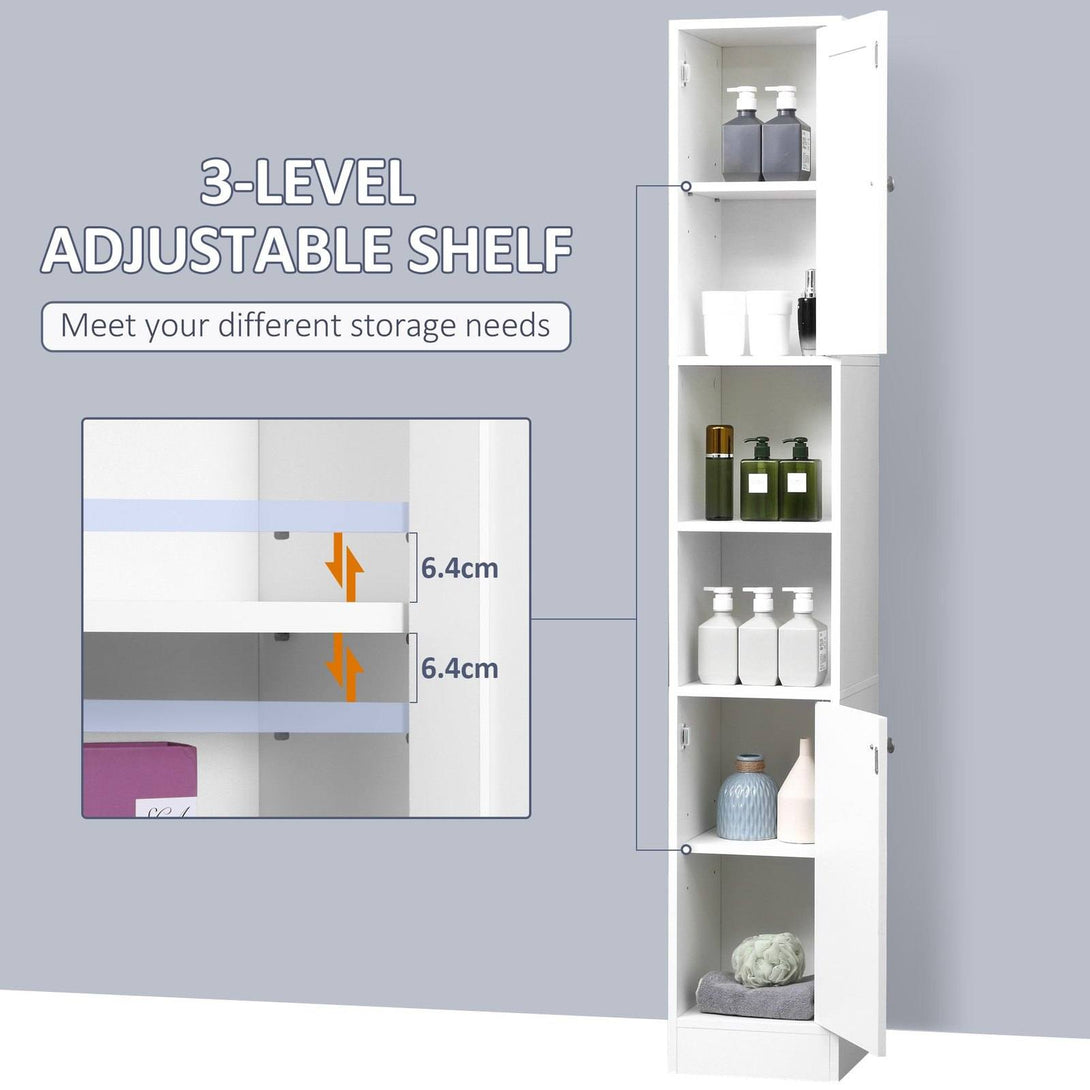 Still looking for more storage space for your bathroom or entryway? With 2 open shelves and 2 cupboards with adjustable shelves inside, this floor cabinet offers ample storage space for you. Featuring a mirror on the top door, this tall narrow cabinet provide you a place to dress up. The framework made of quality particleboard is sturdy and durable. Besides, the anti-toppling design adds extra stability. Enjoy a more organized space with this storage unit from kleankin.