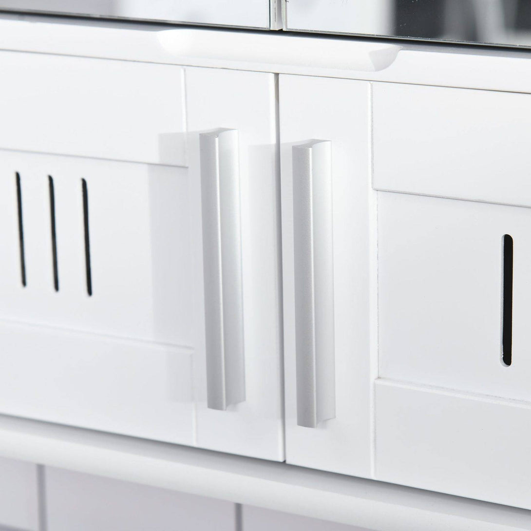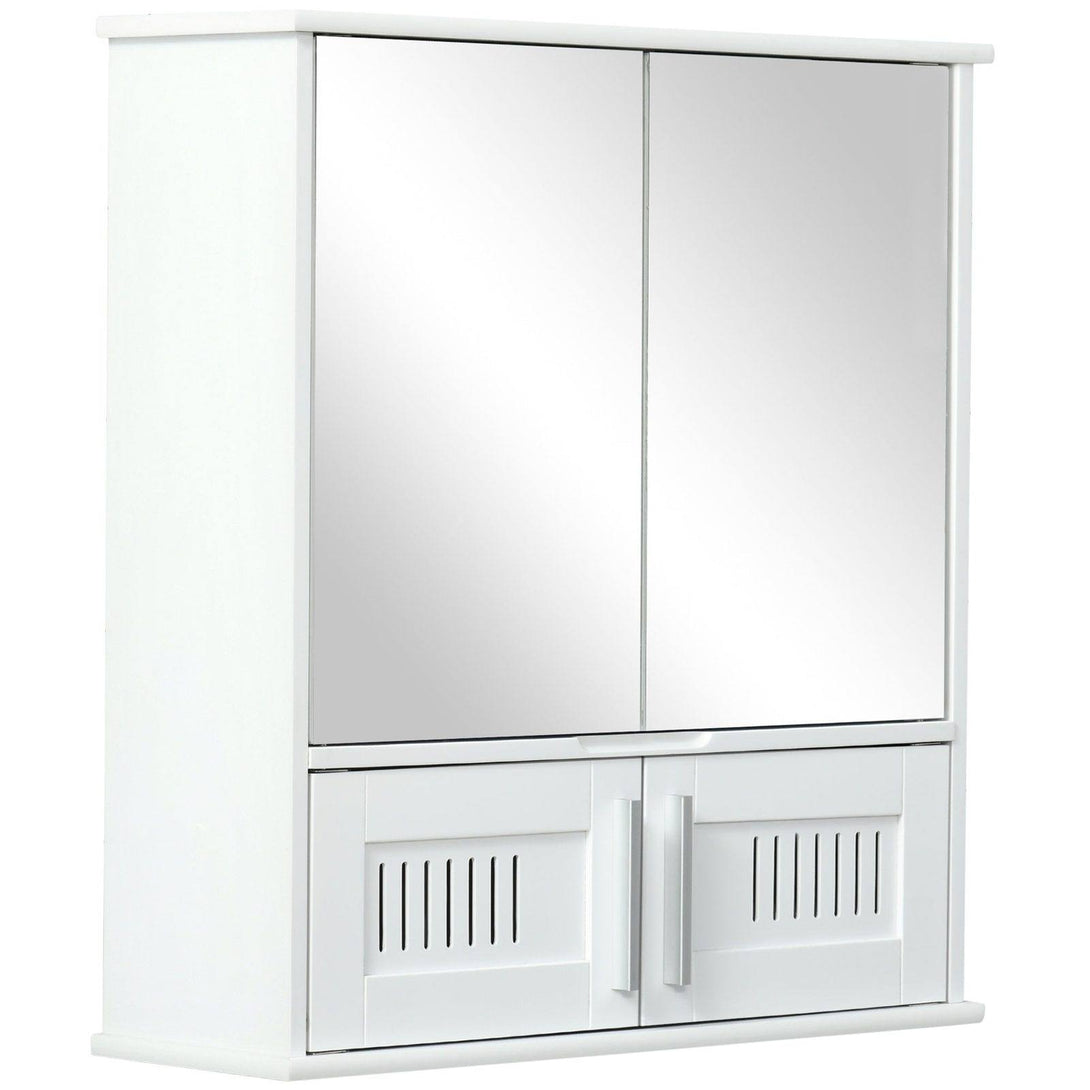 Creating stylish bathroom storage option has never been so easy - this kleankin cabinet will do the trick instantly. Formed of a bottom shelf with small vented doors for airflow, with an two-compartment upper cabinet, there's plenty of space for keeping bottles, make-up, toiletries and everything in-between. Mirrored doors give you a place to see and get ready. The surface is painted for a smooth and easy-wipe finish. Setting it up is simple: simply fix on the wall securely and go.