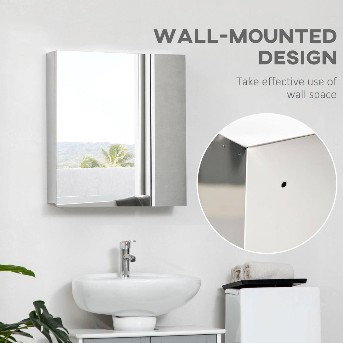 A must-have bathroom essential - this kleankin mirrored cabinet. Not only a place to see yourself and get ready, but it features inner storage - the three shelves offer room for keeping makeup, hygiene and other products safely stored. It is fitted with one large door and one smaller, so the break doesn't get in the way of viewing yourself. Complete with soft-closing hinges.