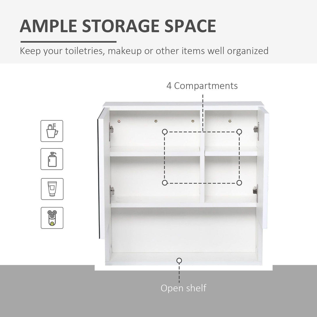 kleankin Bathroom Mirror Cabinet Wall-Mounted Storage w/ Double Door Adjustable Shelf - White