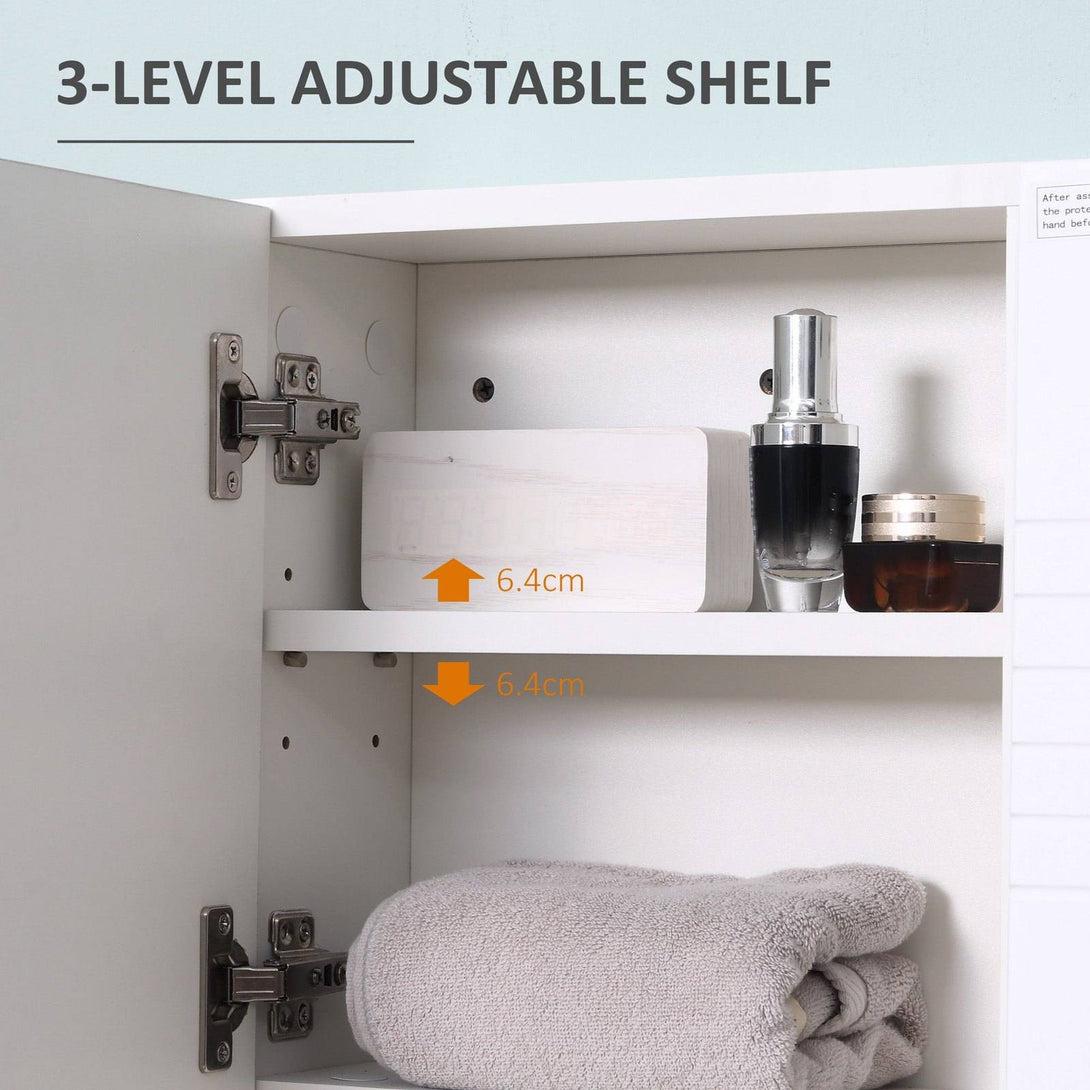 Keep your bathroom organised with this wall-mounted cabinet from kleankin. You're able to place toiletries in the two cabinets and on the bottom shelf. It being on the wall is great for saving space, everything you need is within touching distance and it's the perfect position to look in the mirror. Made from solid particle board, this cabinet is durable – perfect for everyday use. The minimalistic design will match your bathroom décor. Not only useful, it's also stylish too.
