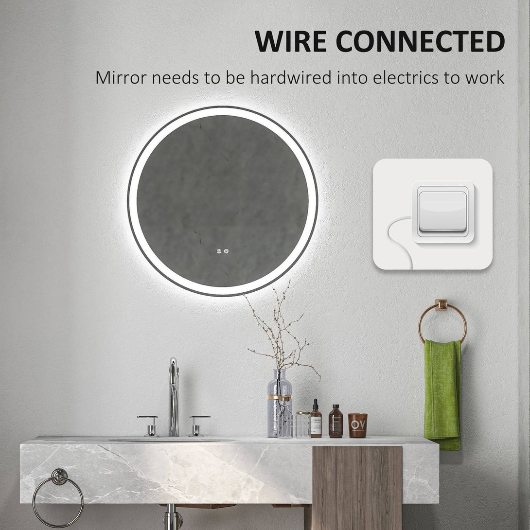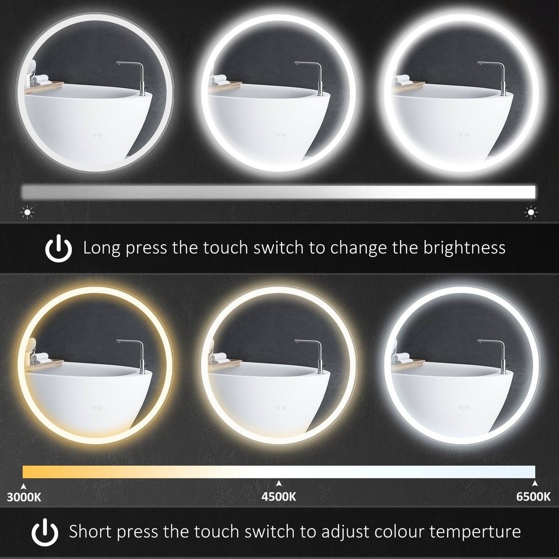 An all-rounder for your home - this kleankin bathroom led mirror. Not only does it come in a stylish round shape, but it's fitted with an outer LED light, with a touch-control, and for bonus points, it has a defog feature: you'll love using this day and night. The light brightness is adjustable - with colours warm white, white and cool white to pick between - you can use this mirror through different times of the day. Wire connected design - must be installed by a trained professional.