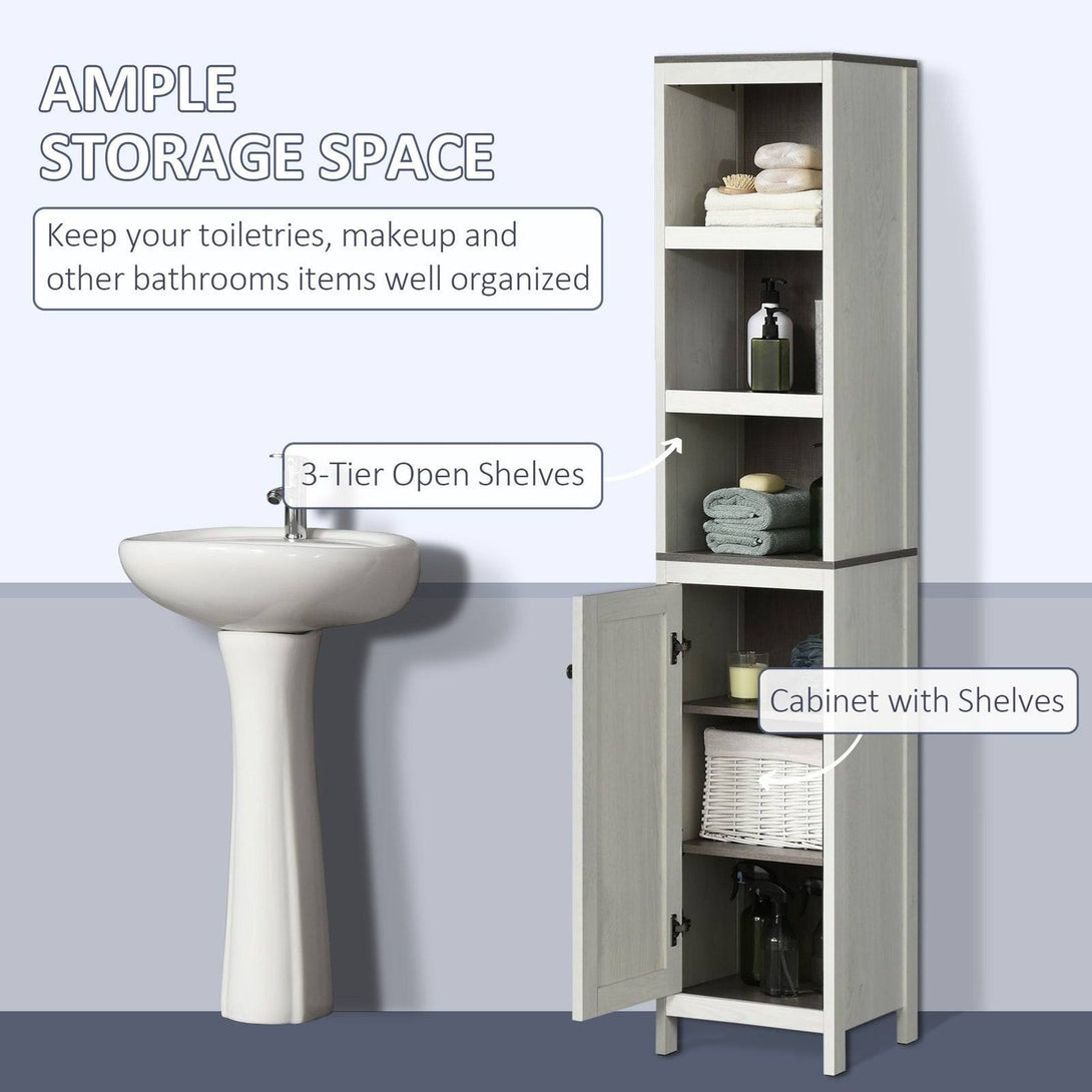 Make your bathroom storage tall and narrow with this kleankin number. A slimline design makes it great for even the tightest of spots (as always, make sure you measure before purchase!) - great for bathrooms lacking on space. Made from particle board, this piece is sturdy, coating with melamine for gently protection. Features three top shelves and a bottom cabinet, so the whole family has room to keep their things stored. Complete with anti-tipping straps.