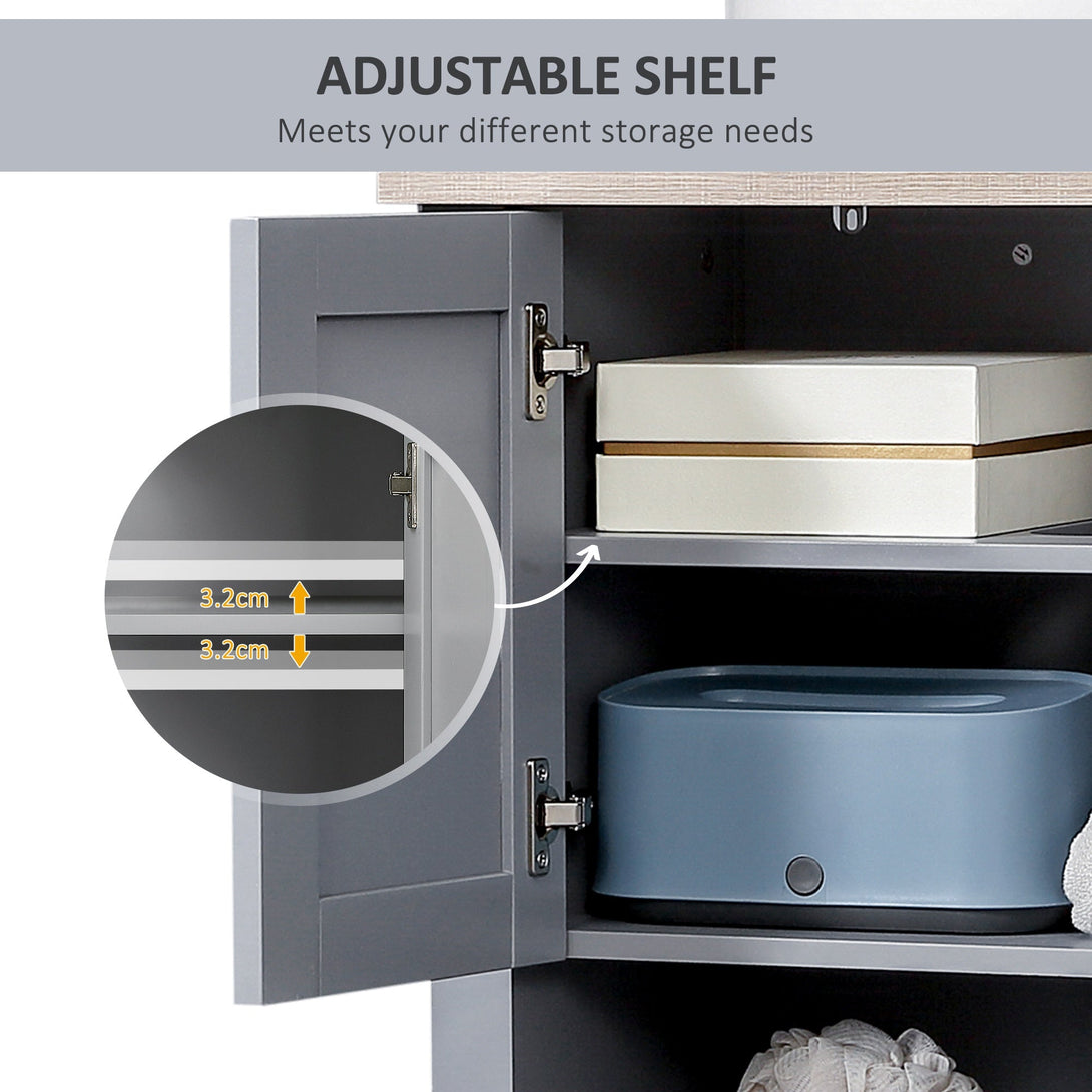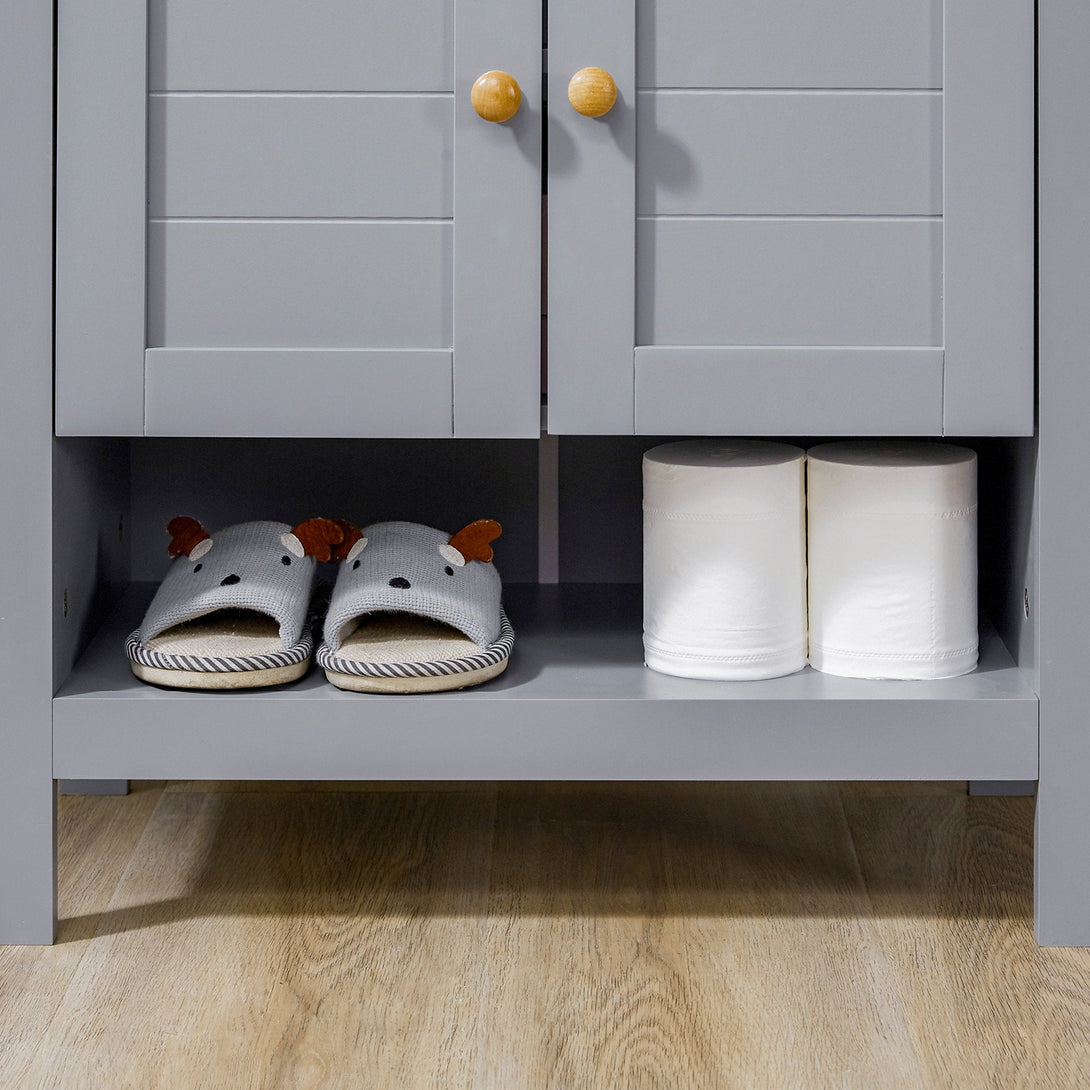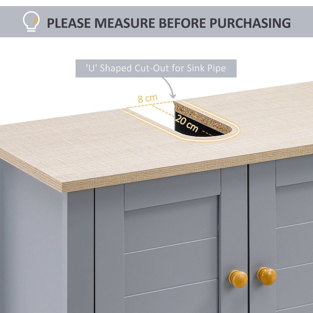 Expand under-sink storage with a touch of homely rustic charm - bring this under-sink cabinet from kleankin into your bathroom. The grey colour and boxy shape creates a stand-out look which also welcomes itself into the space with ease. The bathroom cabinet is made from MDF for durability, featuring a top cupboard and shelf for plenty of storage space. Finished with a 'U' cut out, allowing the under sink bathroom cabinet to slot in snugly around the sink and pipes.