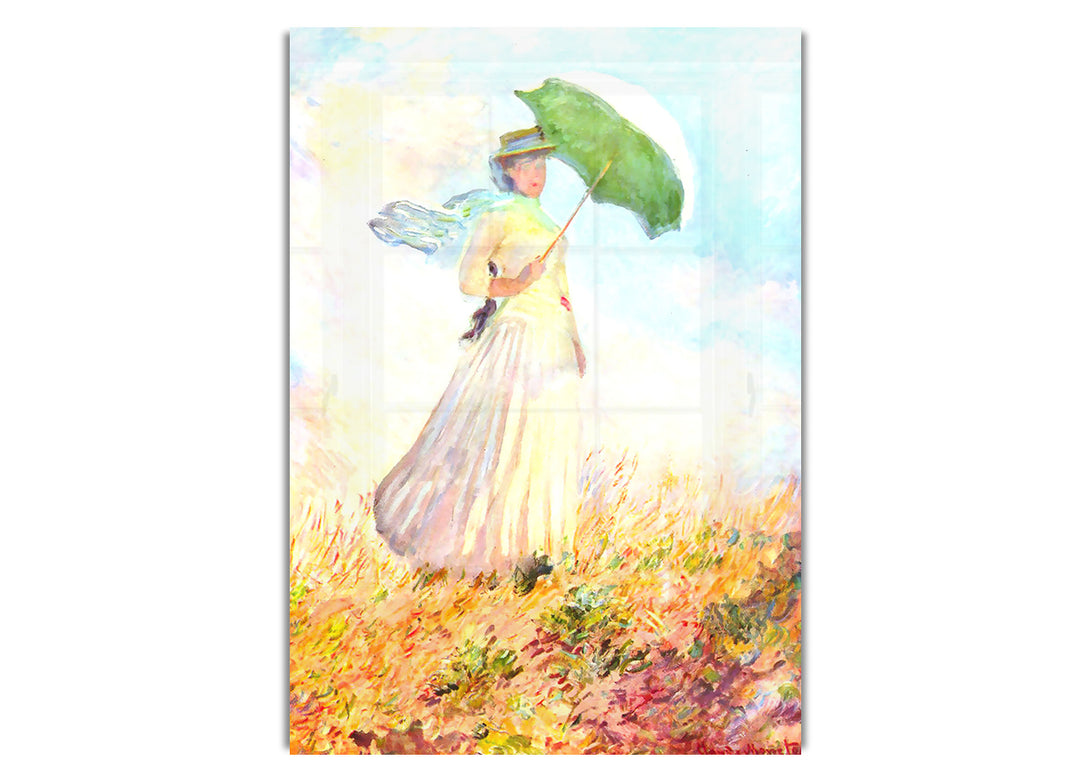 Lady With Sunshade, Study By Monet acrylic print, UV printed onto 5mm thick acrylic glass. Comes with everything you need to hang on your wall.