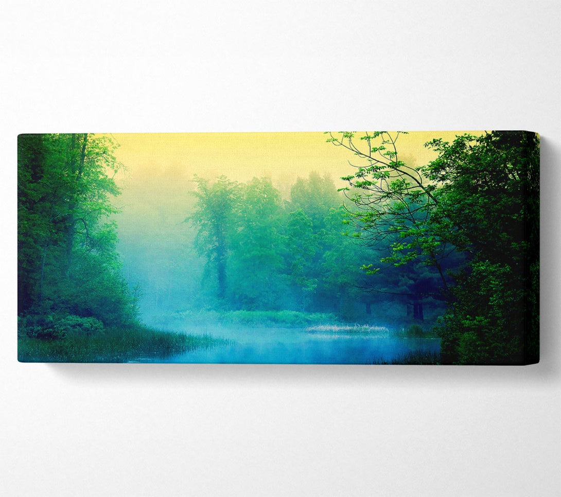 Lake In The Mist canvas, printed on coated polyester canvas. Mounted on to a 44mm box frame, ready to hang.