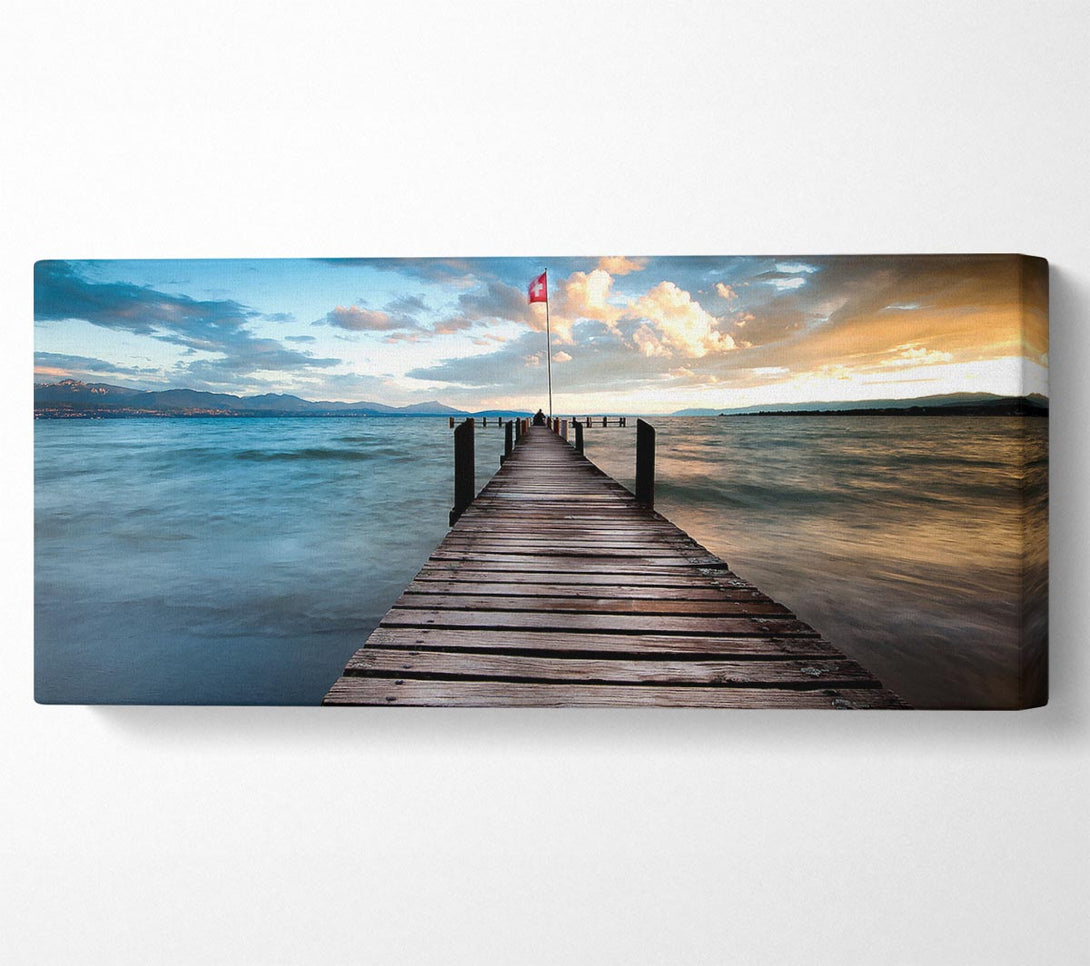 Picture of Lake Pontoon At Dusk Panoramic Canvas Wall Art