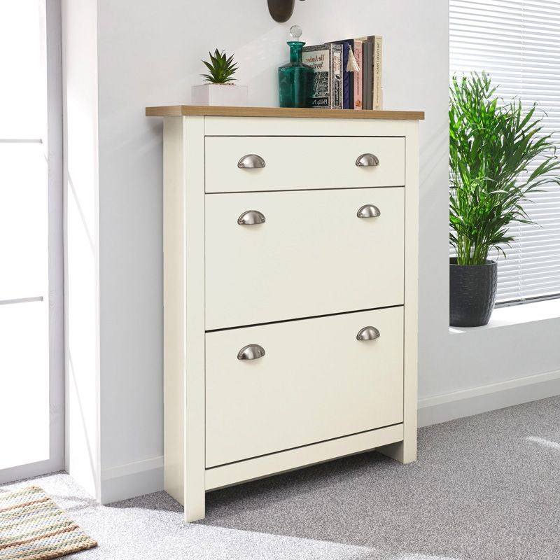 Lancaster Tall Shoe Storage Cream 2 Doors 4 Shelves 1 Drawer