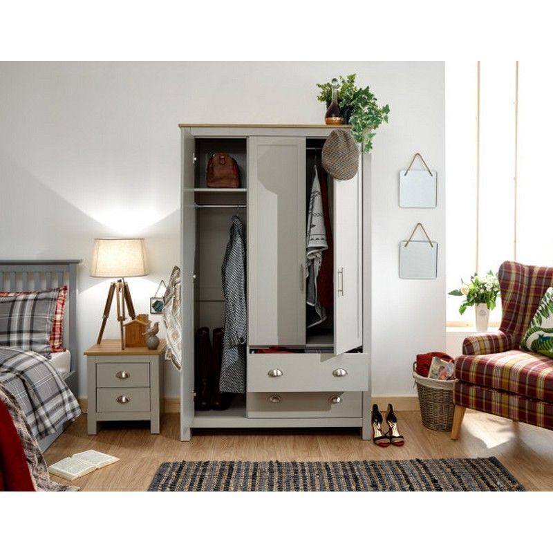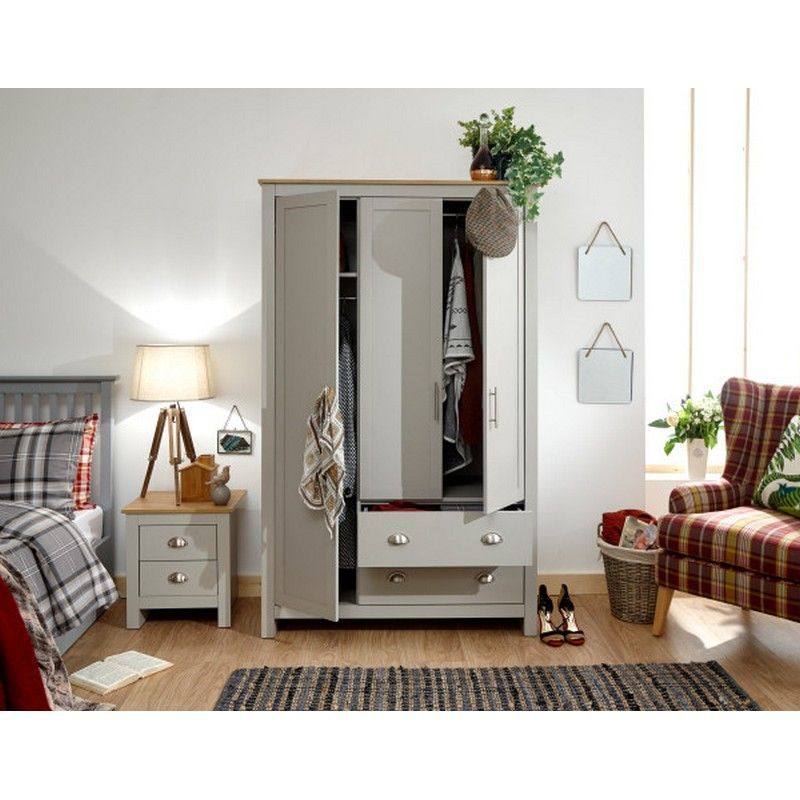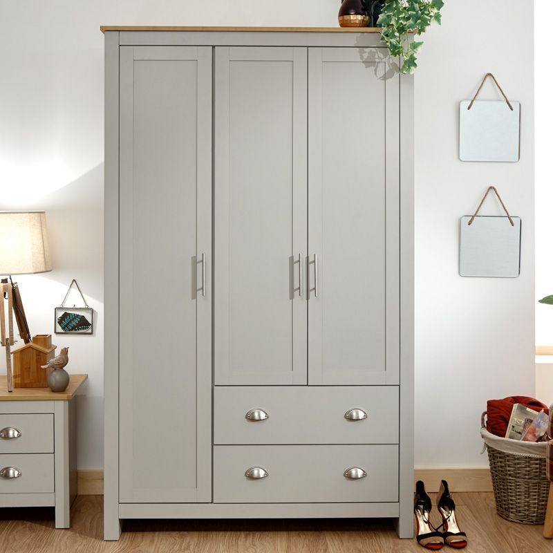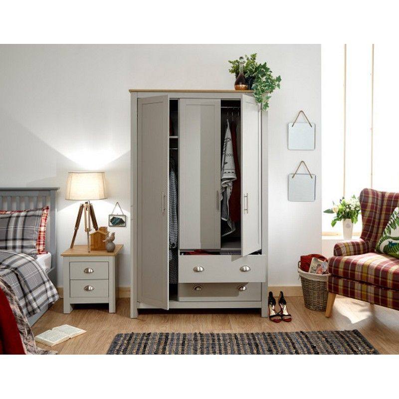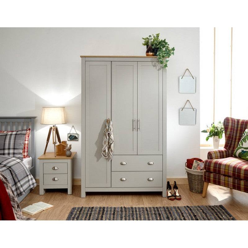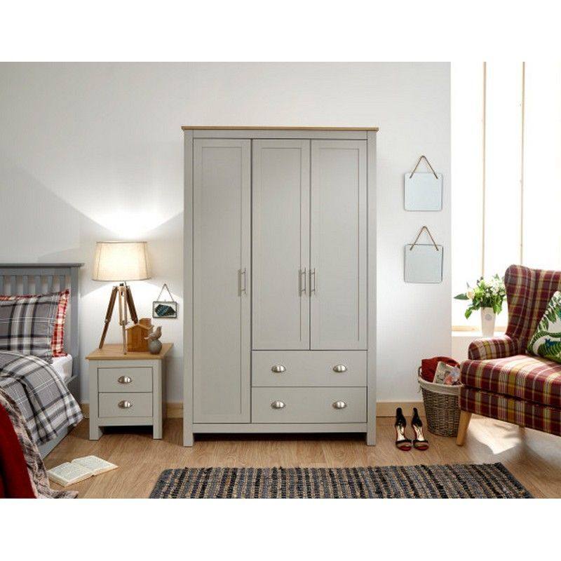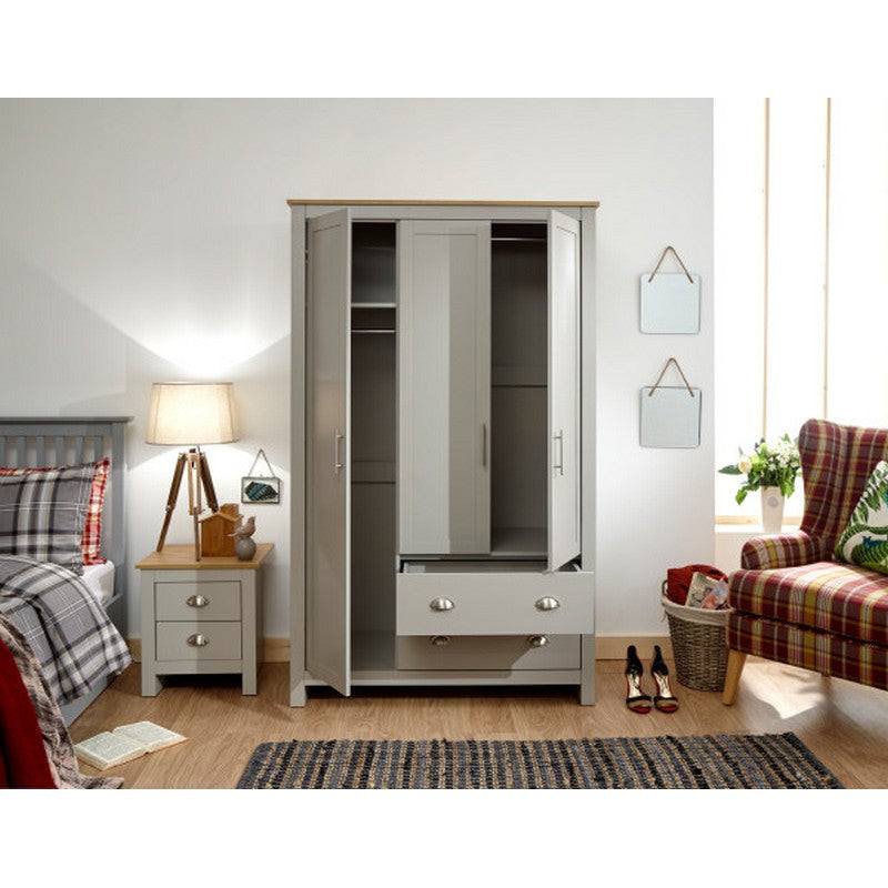Lancaster Tall Wardrobe Grey 3 Doors 1 Shelf 2 Drawers